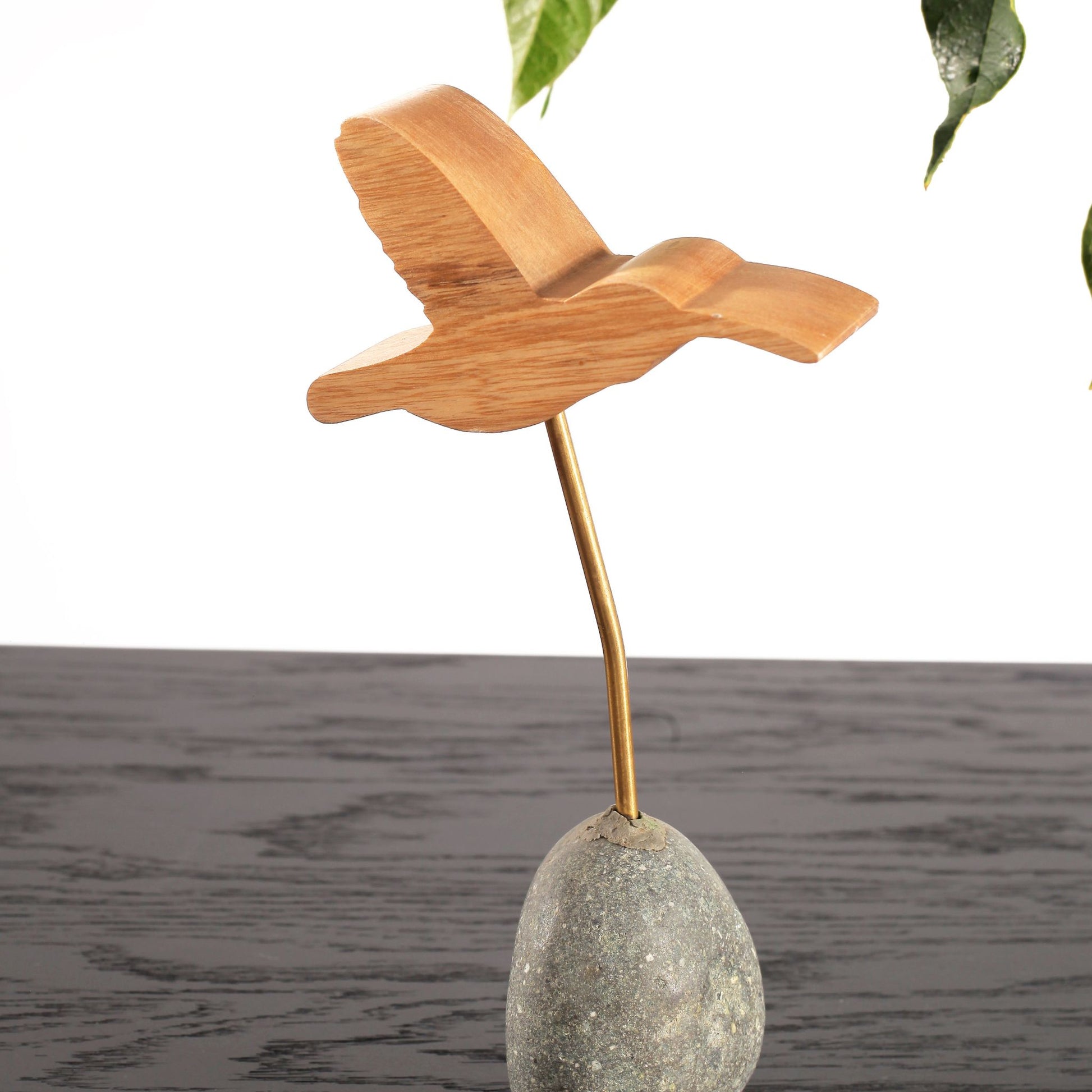 Ave decorativa fabricada en madera de rosa morada y latón sólido.