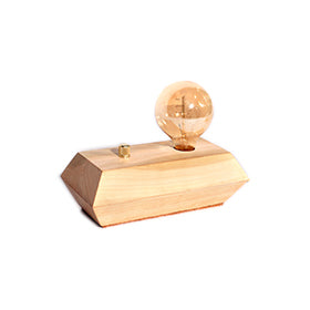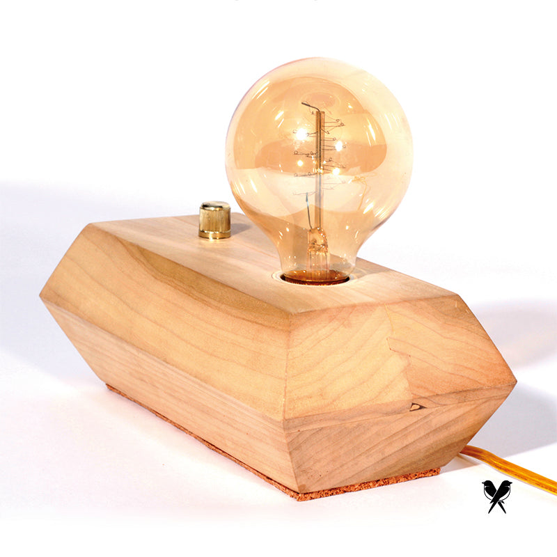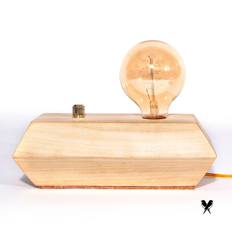 Lámpara de mesa fabricada en madera sólida con foco tipo vintage.