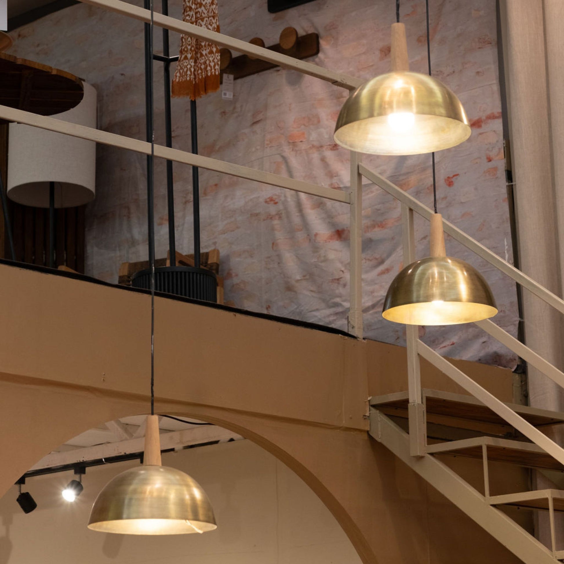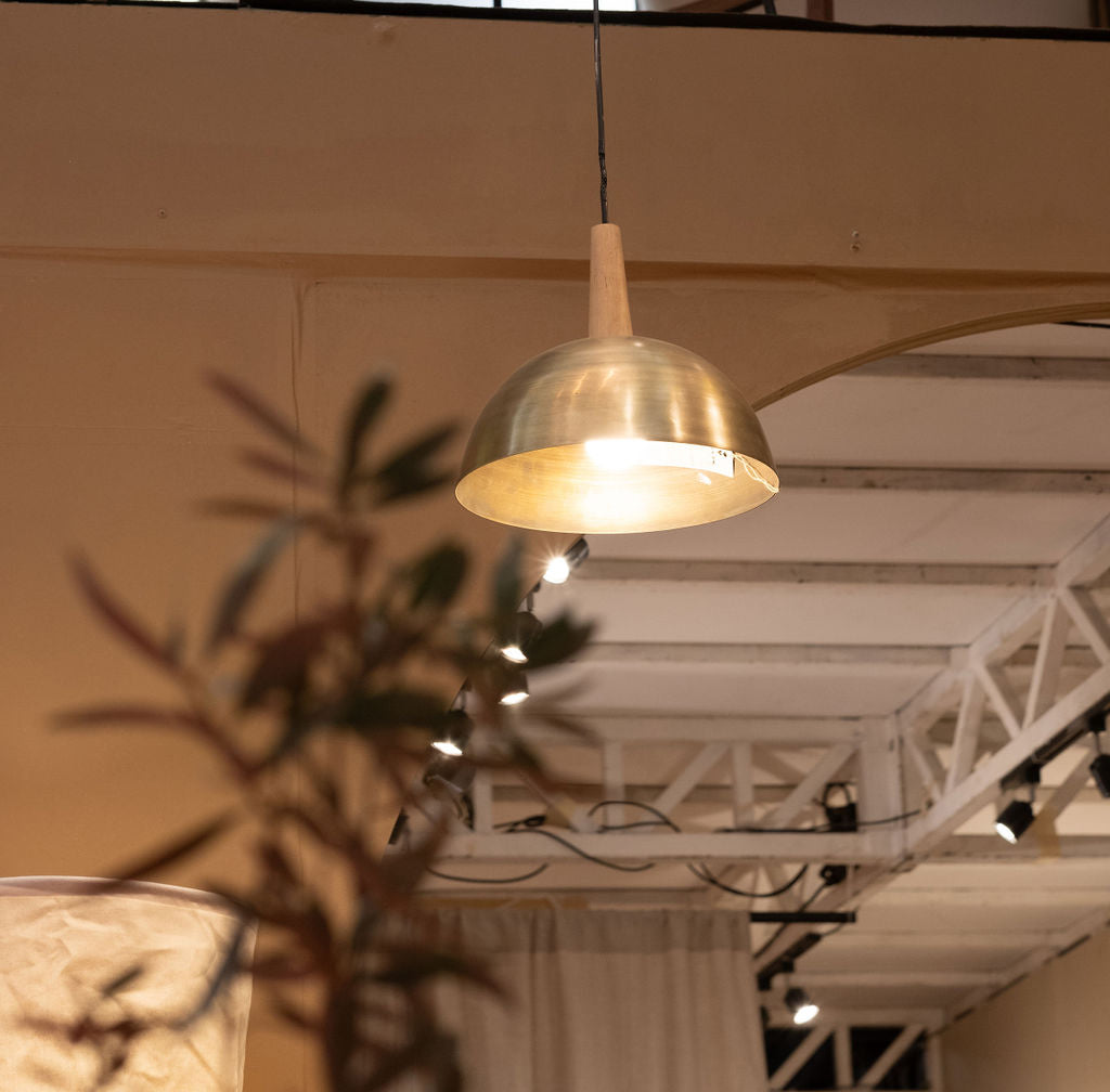 Lámpara colgante metálica con detalle en madera