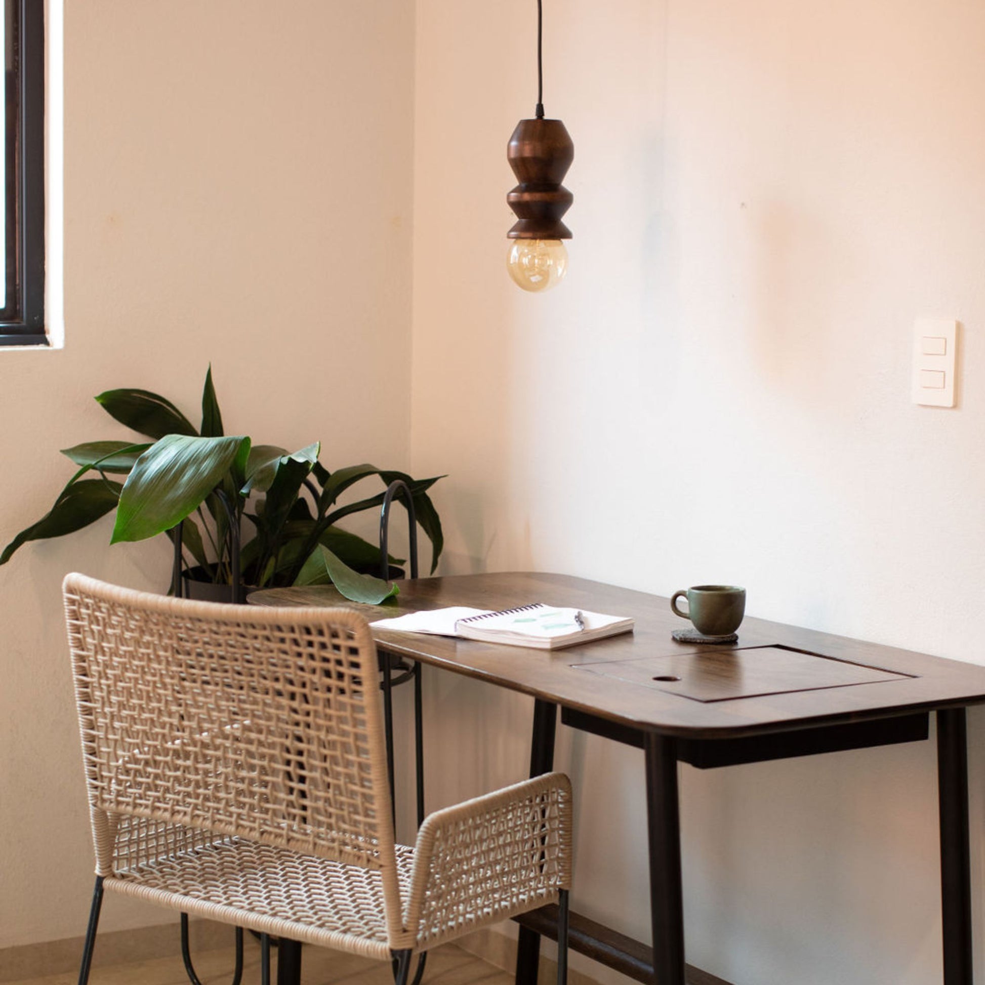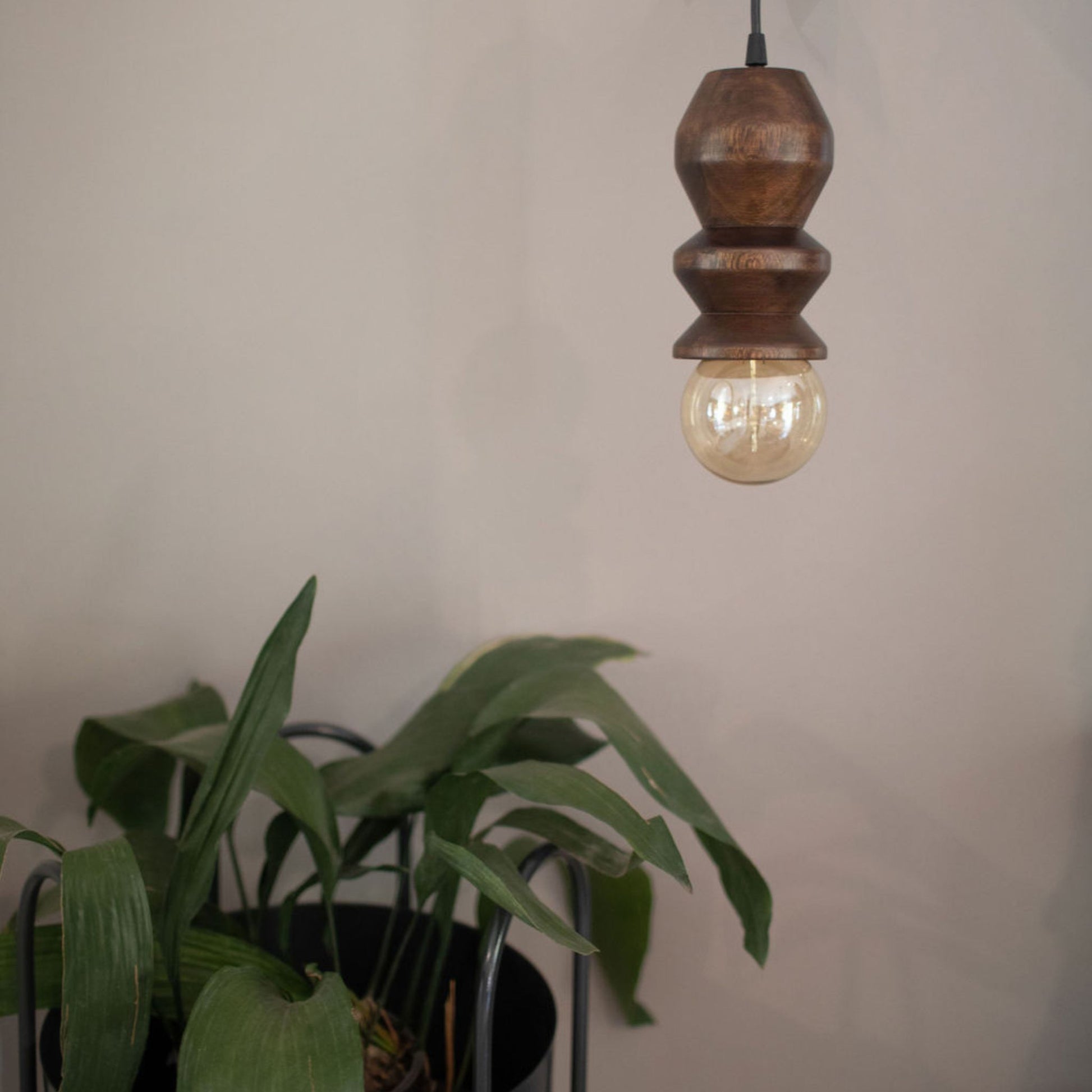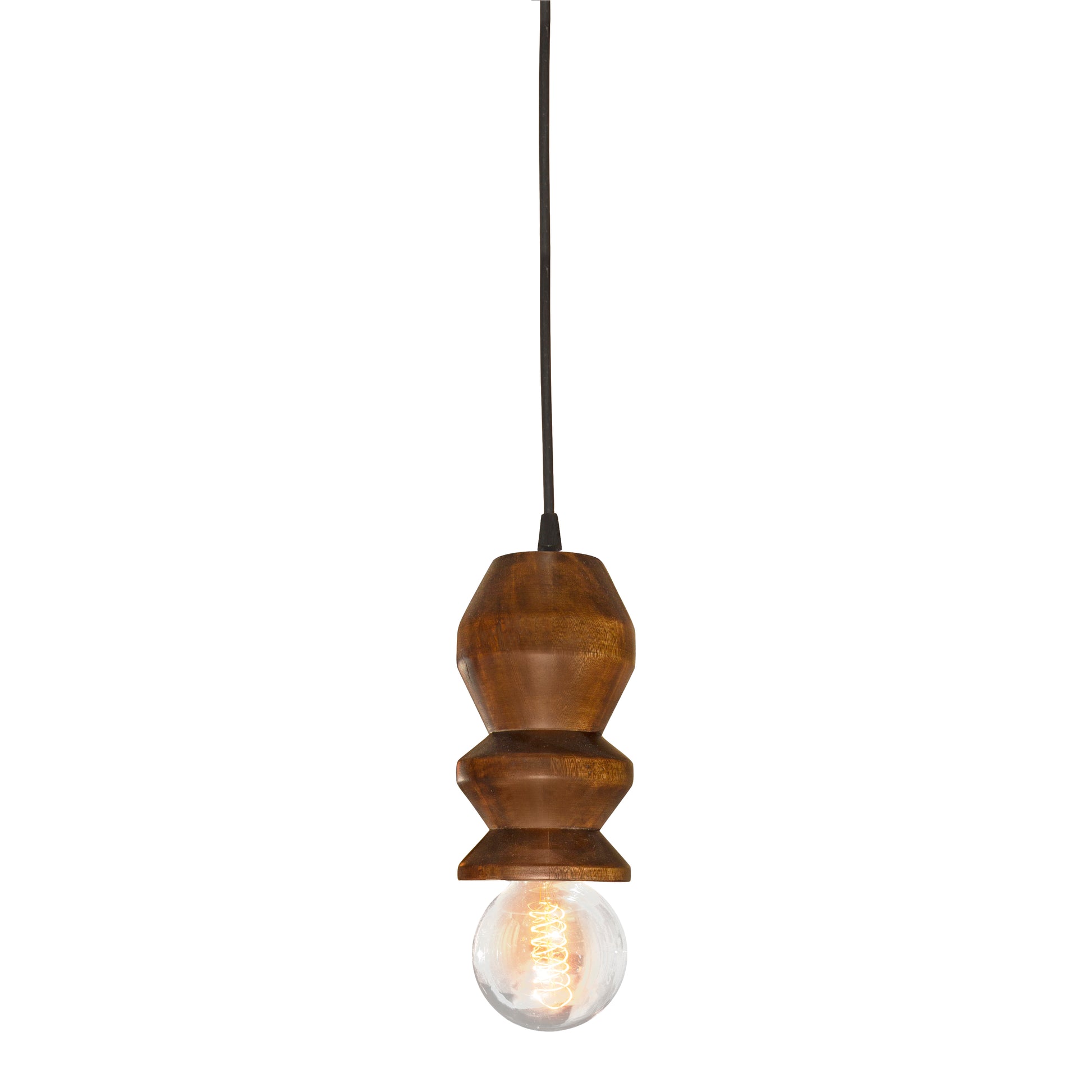 Lámpara colgante torneada en madera sólida