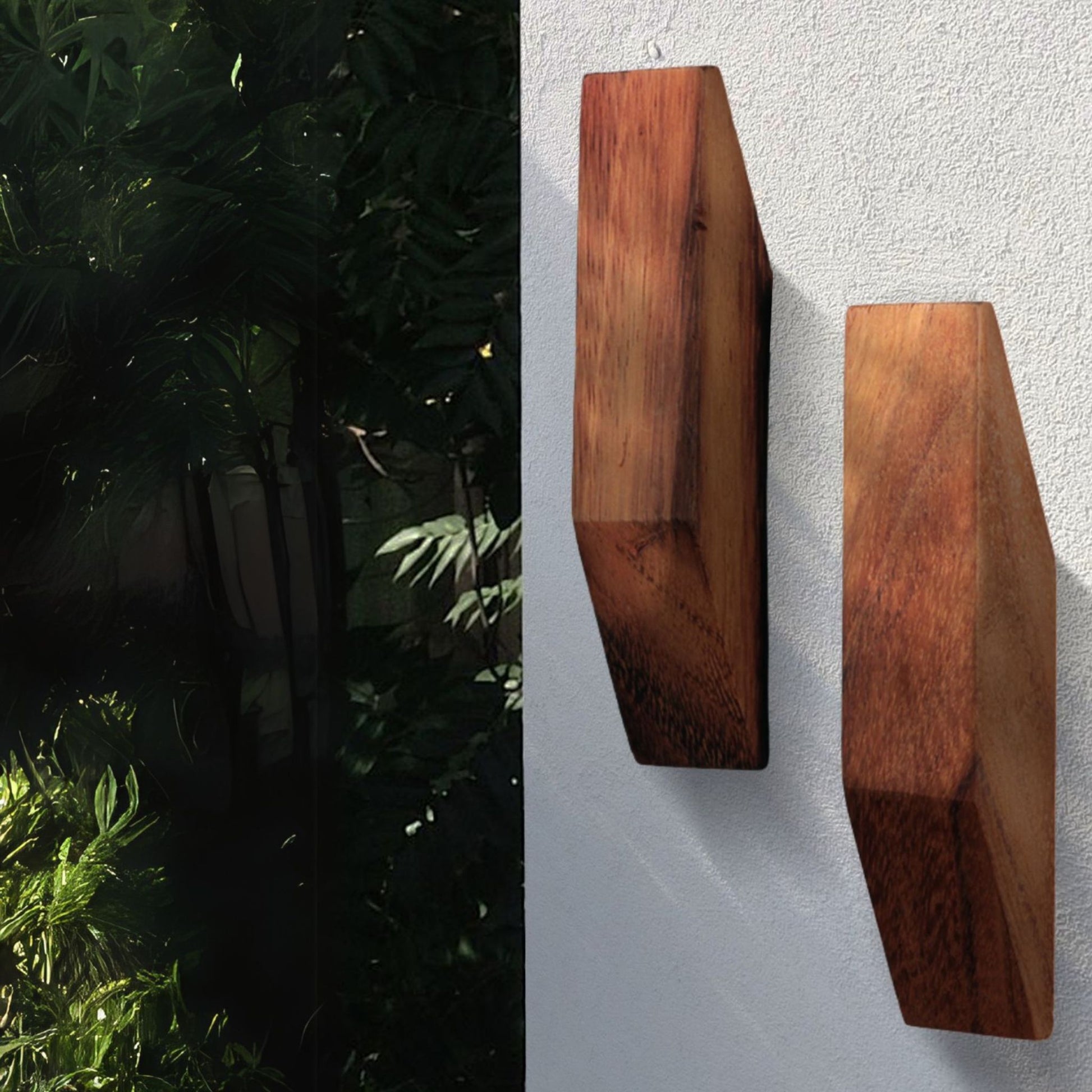 Juego de 2 percheros a muro fabricados en madera solida de parota.