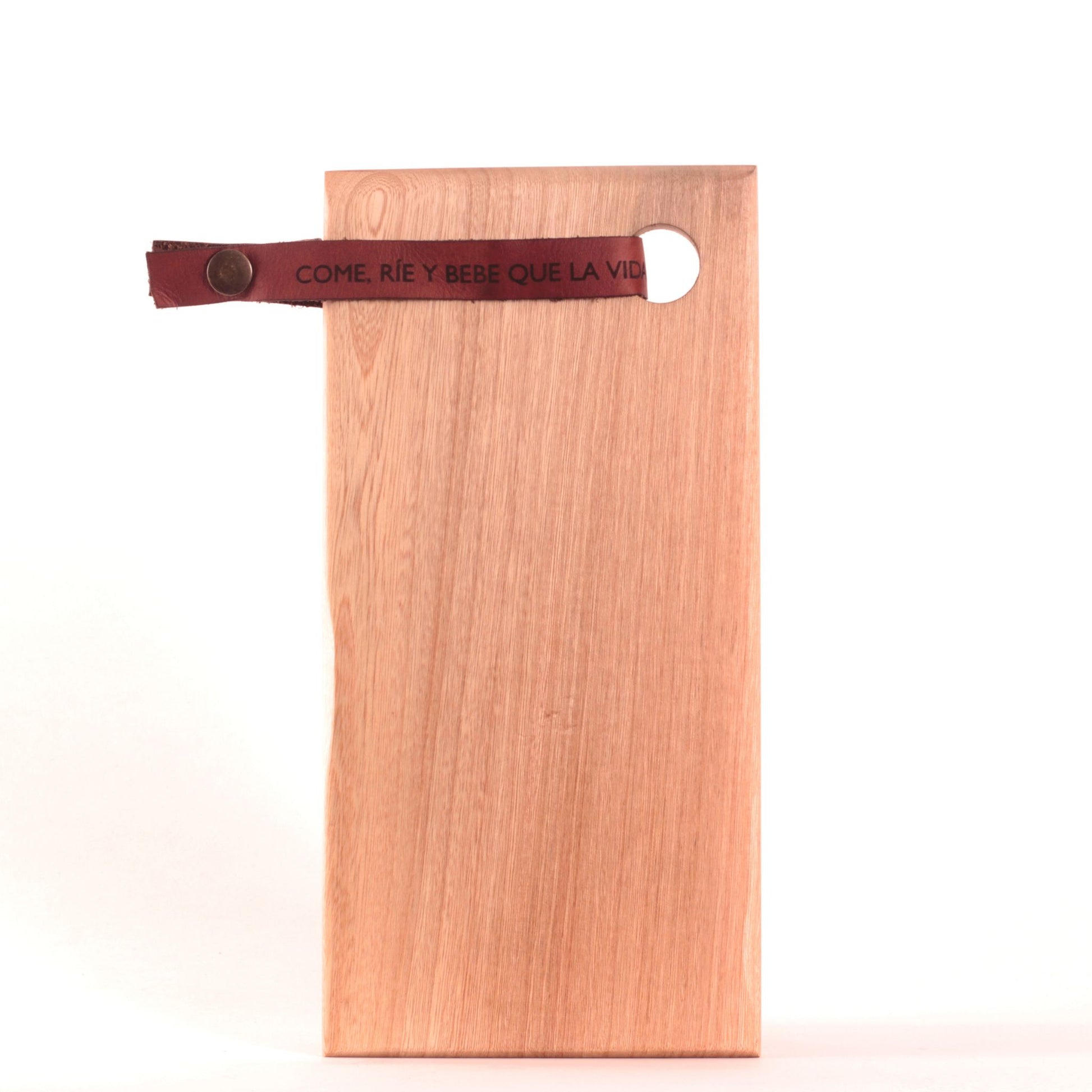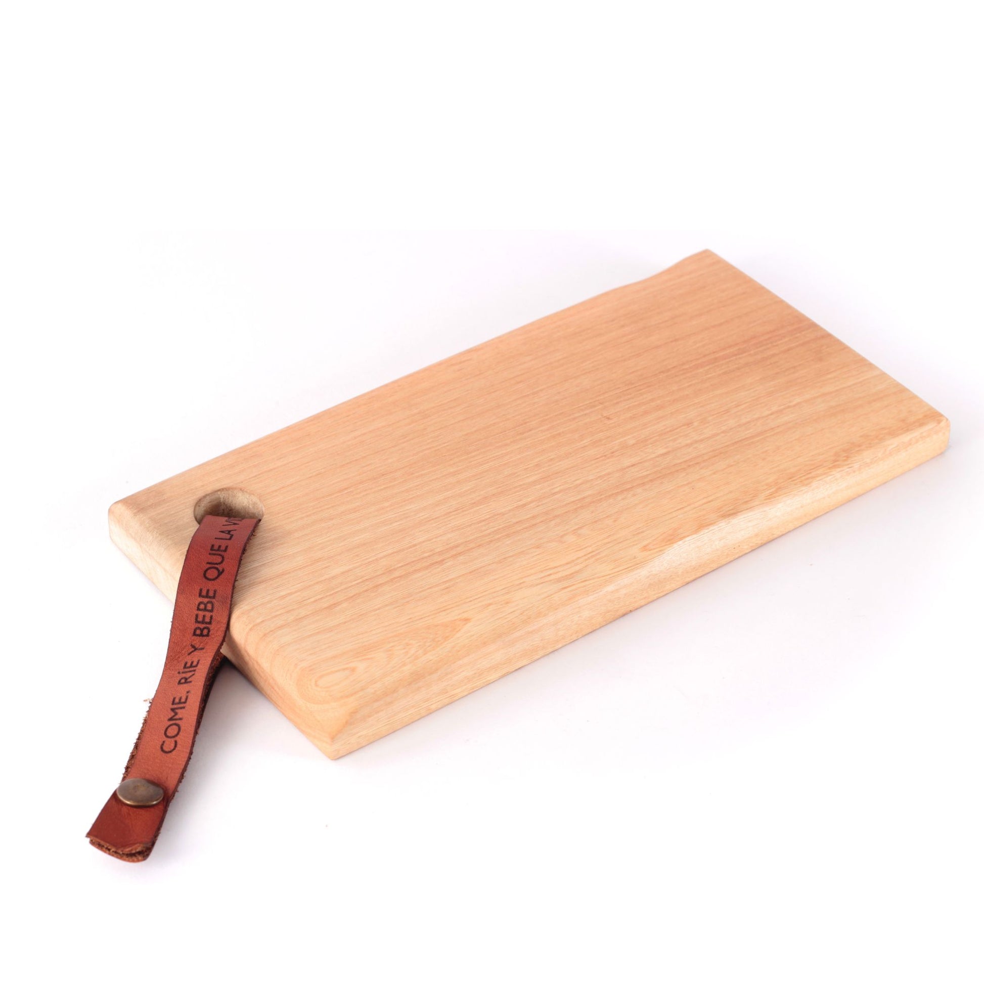 Tabla para quesos fabricada en madera sólida y asa de piel